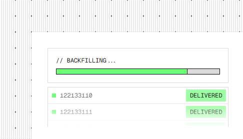 Deliver raw or filtered historical blockchain data sequentially, with guaranteed delivery and flexible batching options.
